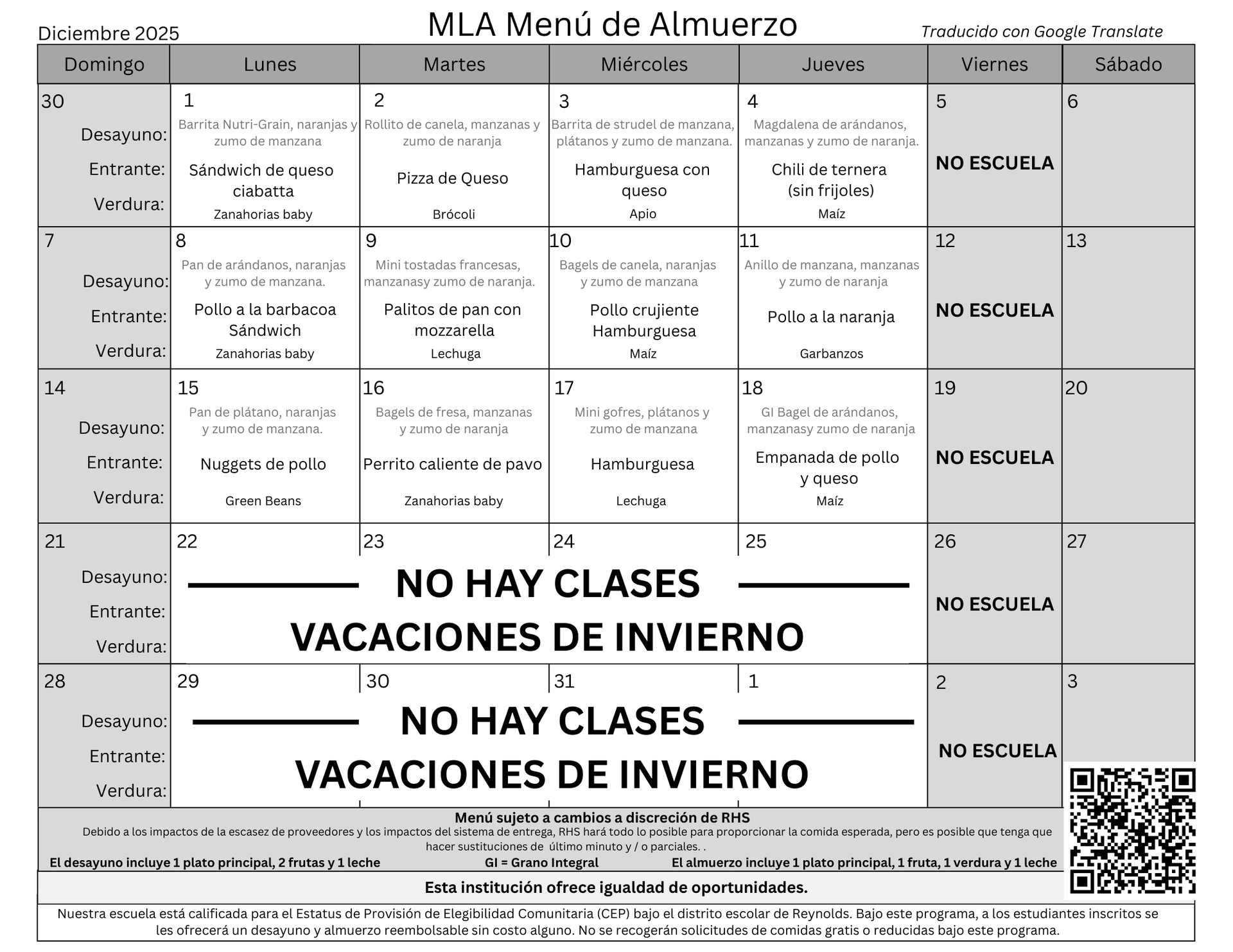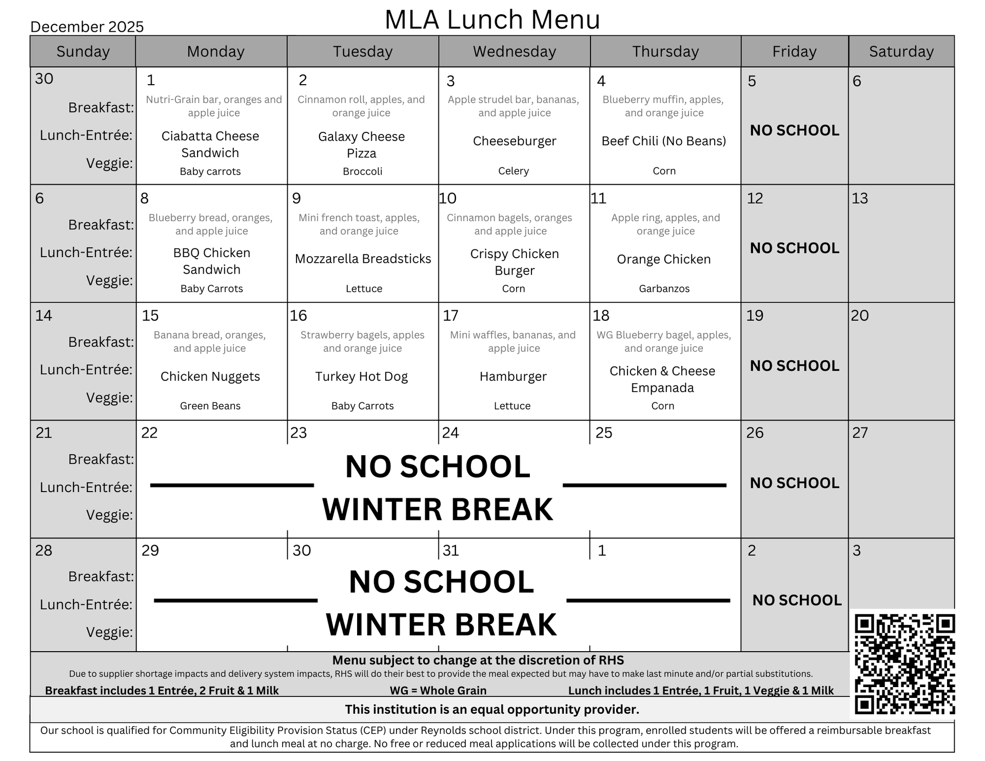 For more nutritional information, including allergens, see the Reynolds Nutrition Menu (